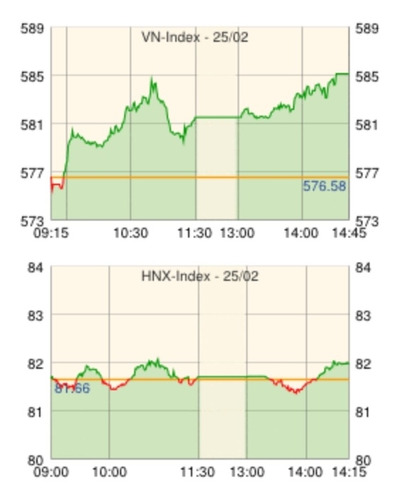 | HNX指数 | 82.25 | +0.59 | +0.72 |