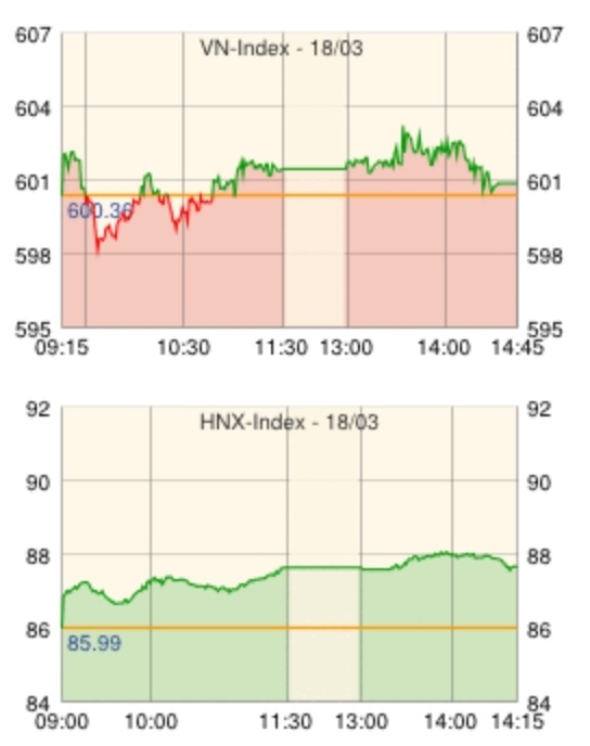 ホーチミン証券取引所の18日の取引は、米国の2月の鉱工業生産指数が改善したことで米経済への楽観的観測が強まったことを受けてプラスで寄り付き、603.21の高値を記録したが、600を超えたことで9営業日続いていた上昇も一服し、前日終値を▲0.51下回り小幅な反落で取引を終えた。取引は活発で、10営業日連続で増加しており、この日の相対取引を含む売買代金は3.2兆ドン(約155億円)に達した。主力株では、タイニンブルボン[SBT]が急上昇したほか、ETF Market Vectors Vietnam Indexに新たに組み入れられたペトロベトナム運輸[PVT]や、FPT情報通信[FPT]が大きく上昇。また、不動産関連が活発に取引されたが、最も売買高の多かったFPT情報通信[FPT]は値を下げた。