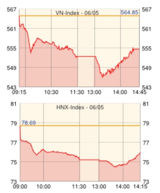 | VN指数 | 555.11 | -9.74 | -1.72 |