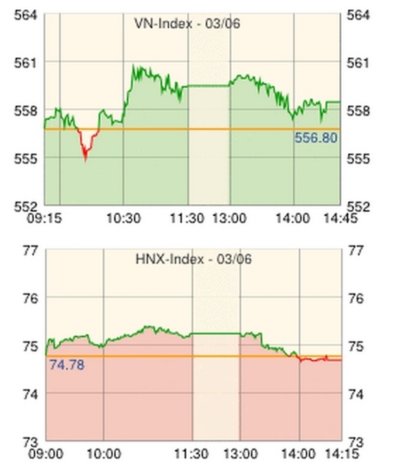 | VN指数 | 558.76 | +1.96 | +0.35 |