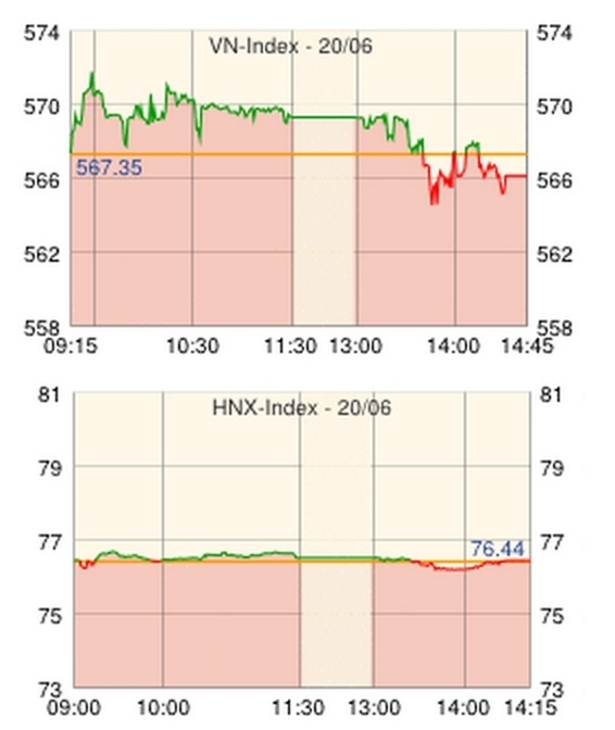 | HNX指数 | 76.31 | -0.13 | -0.17 |