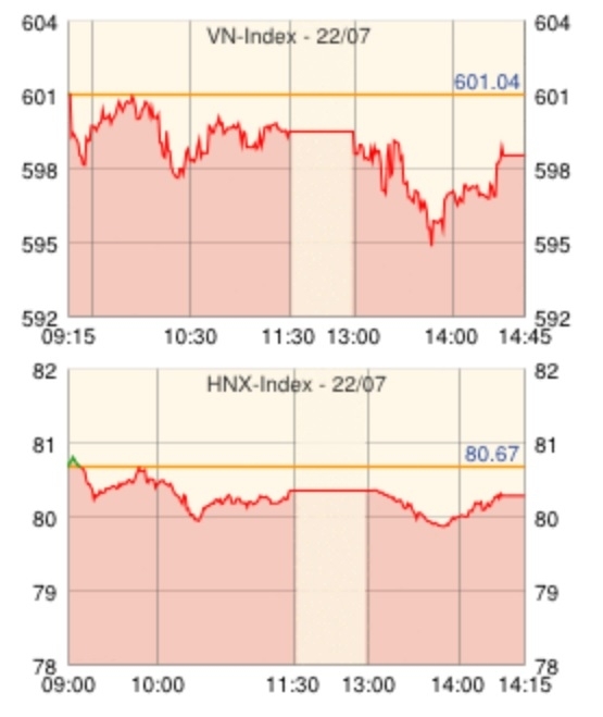 | HNX指数 | 80.25 | -0.42 | -0.14 |