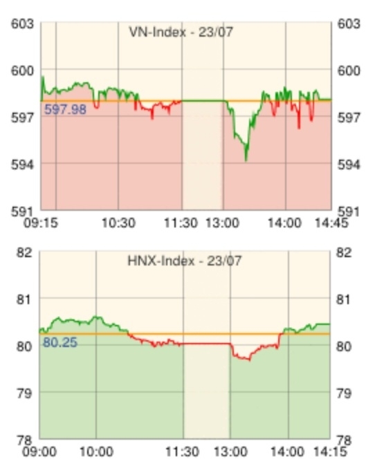 | VN指数 | 597.50 | -0.48 | -0.08 |
