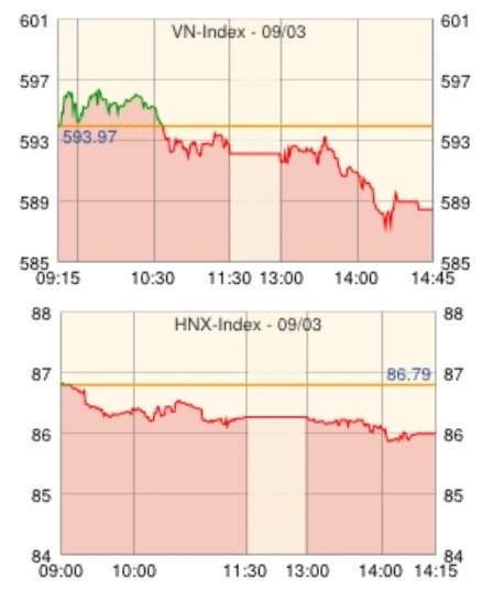 | HNX指数 | 85.90 | -0.89 | -1.03 |