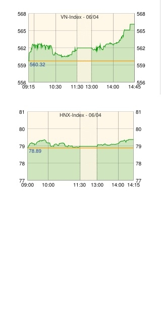 | HNX指数 | 79.32 | +0.43 | +0.55 |