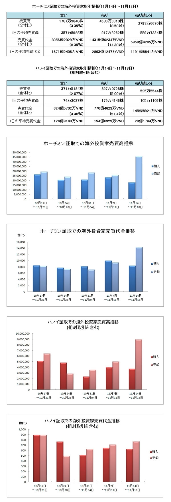 ベトナム株情報 > ベト株ニュース > 市場概況 > 海外投資家の週間動向(11月14日~11月18日)