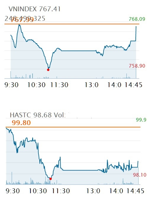 | VN指数 | 767.41 | -0.58 | -0.08 |