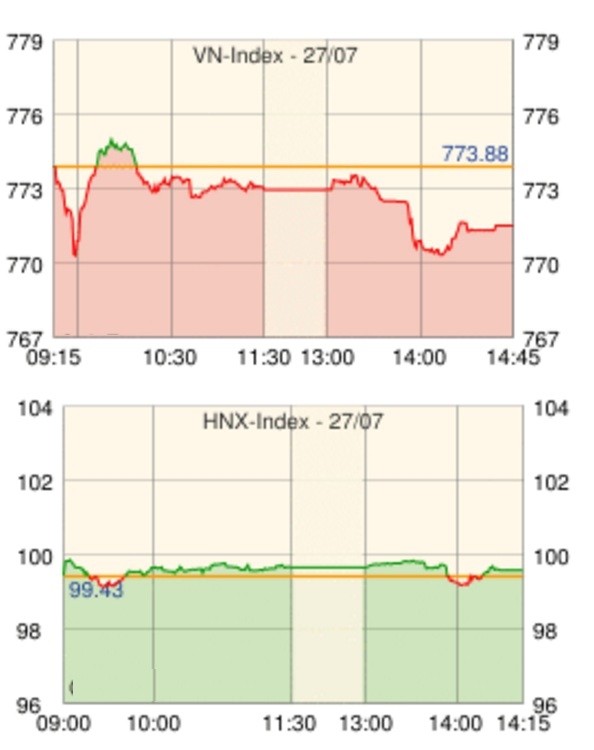 | VN指数 | 771.50 | -2.38 | -0.31 |