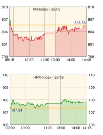| VN指数 | 805.35 | -0.23 | -0.03 |
