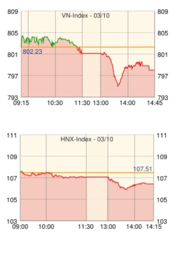 | HNX指数 | 106.53 | -0.98 | -0.91 |