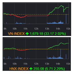 売買代金は3兆5013億VND(約164億円)、前日比+9.6%増加した。主力株は軒並み下落し、インデックスの重しになった。