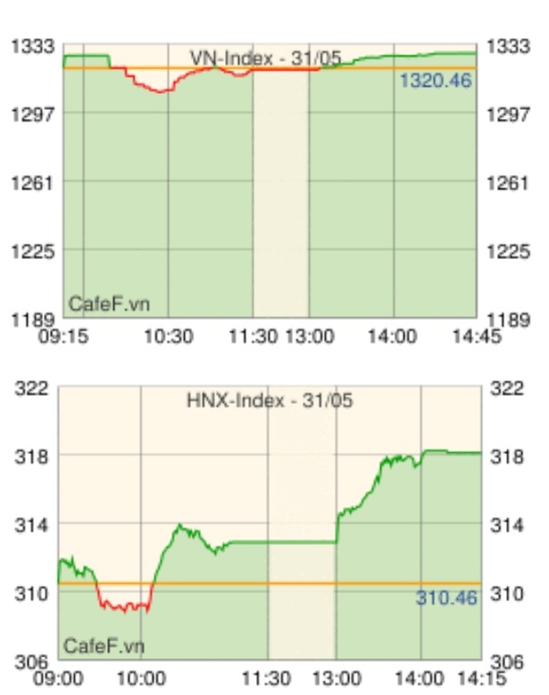 | HNX指数 | 317.85 | +7.40 | +2.38 |