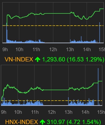 | VN指数 | 1293.60 | +16.53 | +1.29 |