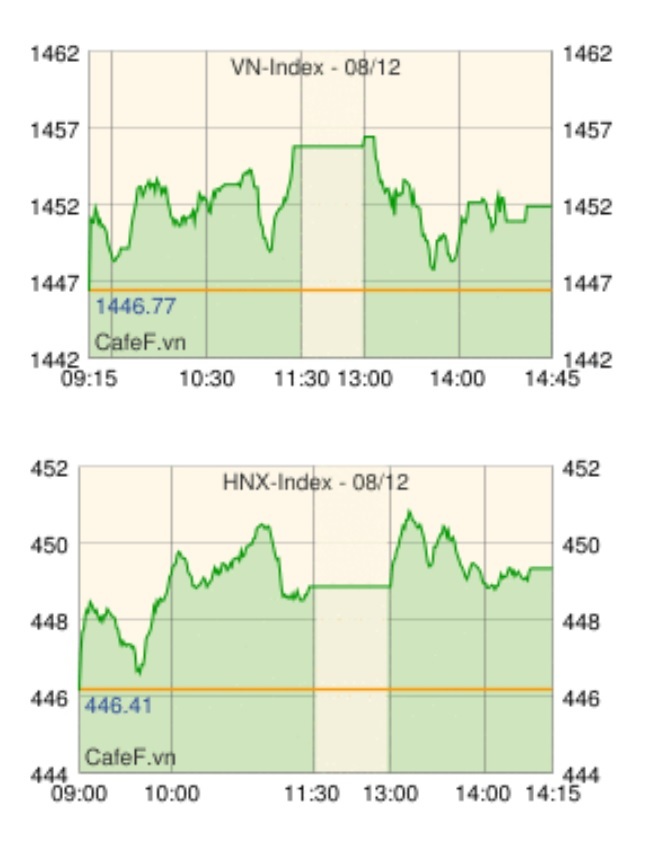 | HNX指数 | 449.74 | +3.34 | +0.75 |