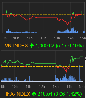 | HNX指数 | 218.04 | +3.06 | +1.42 |