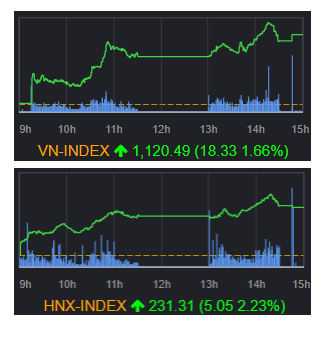 | VN指数 | 1120.49 | +18.33 | +1.66 |