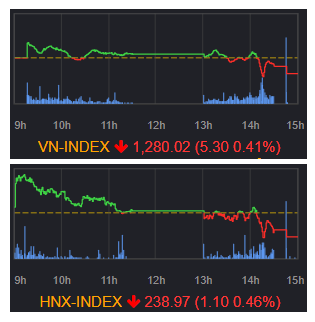 ホーチミン市場は1289.65 (+0.34%)で寄り付いた後、前引けに主に前日終値付近のプラス圏でもみ合い、1290.45 (+0.40%)まで上昇する局面もあった。後場に入ると、暫く前日終値付近で小幅な値動きでもみ合ったが、中盤から売りに押され値を下げる展開となった。1278.87 (▲0.50%)まで下落すると若干値を戻し、VNインデックスは▲5.30ポイント(▲0.41%)安の1280.02で引けた。